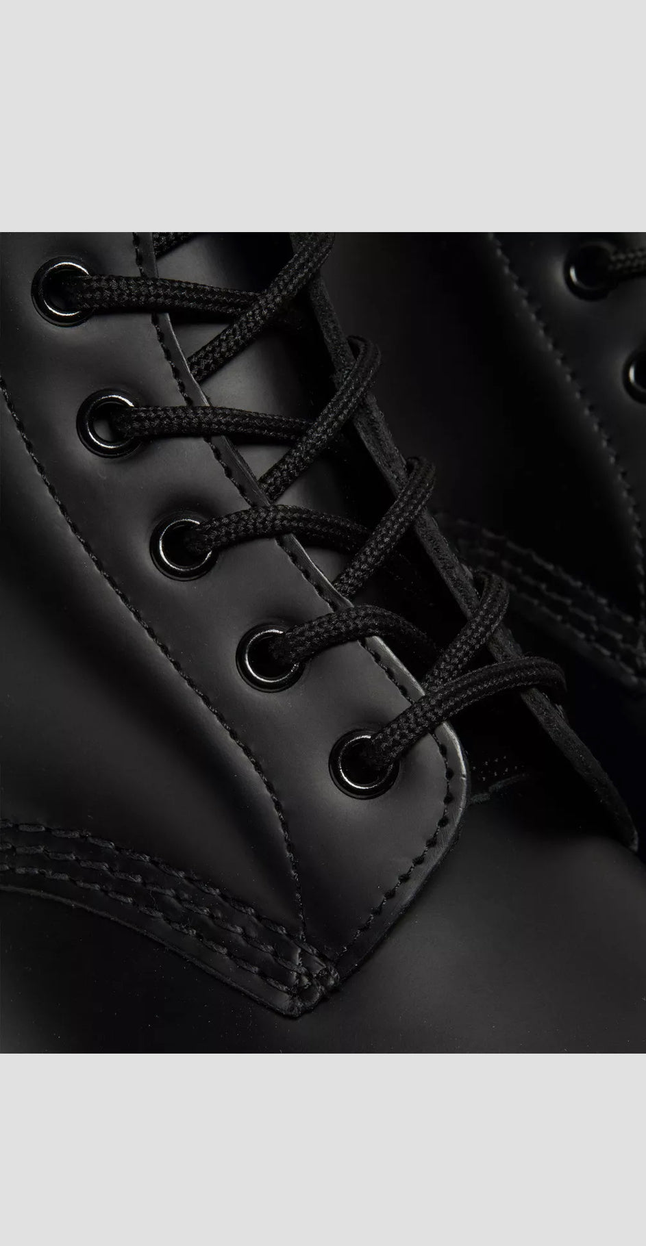 Tør snavs af med en fugtig klud. Påfør en neutral eller korrekt farvet voksbaseret skosværte. Polér med en Dr. Martens skobørste for at genoprette glansen efter behov.