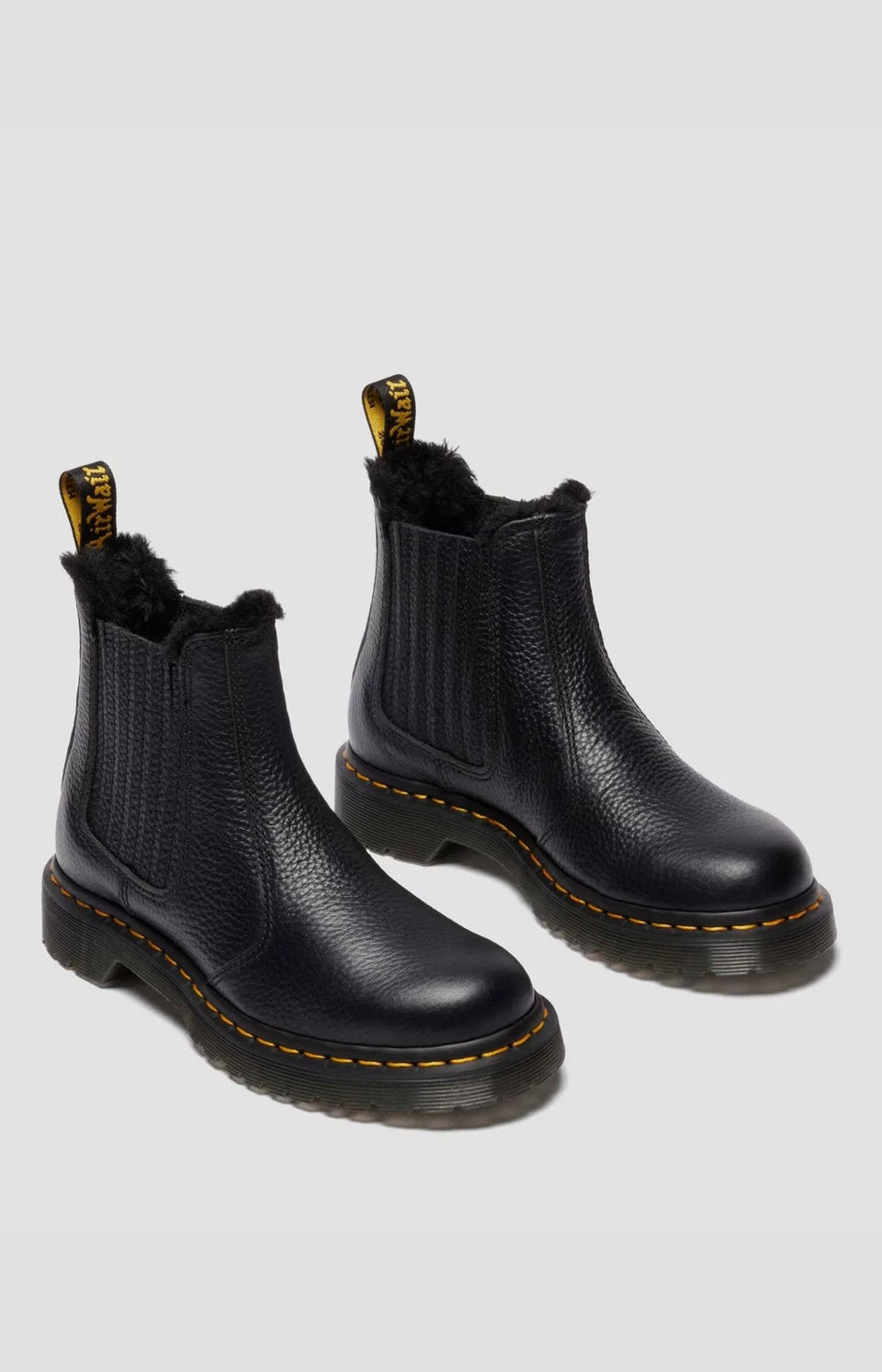 Dr. Martens Leonore pelsforede Chelsea støvler i sort.